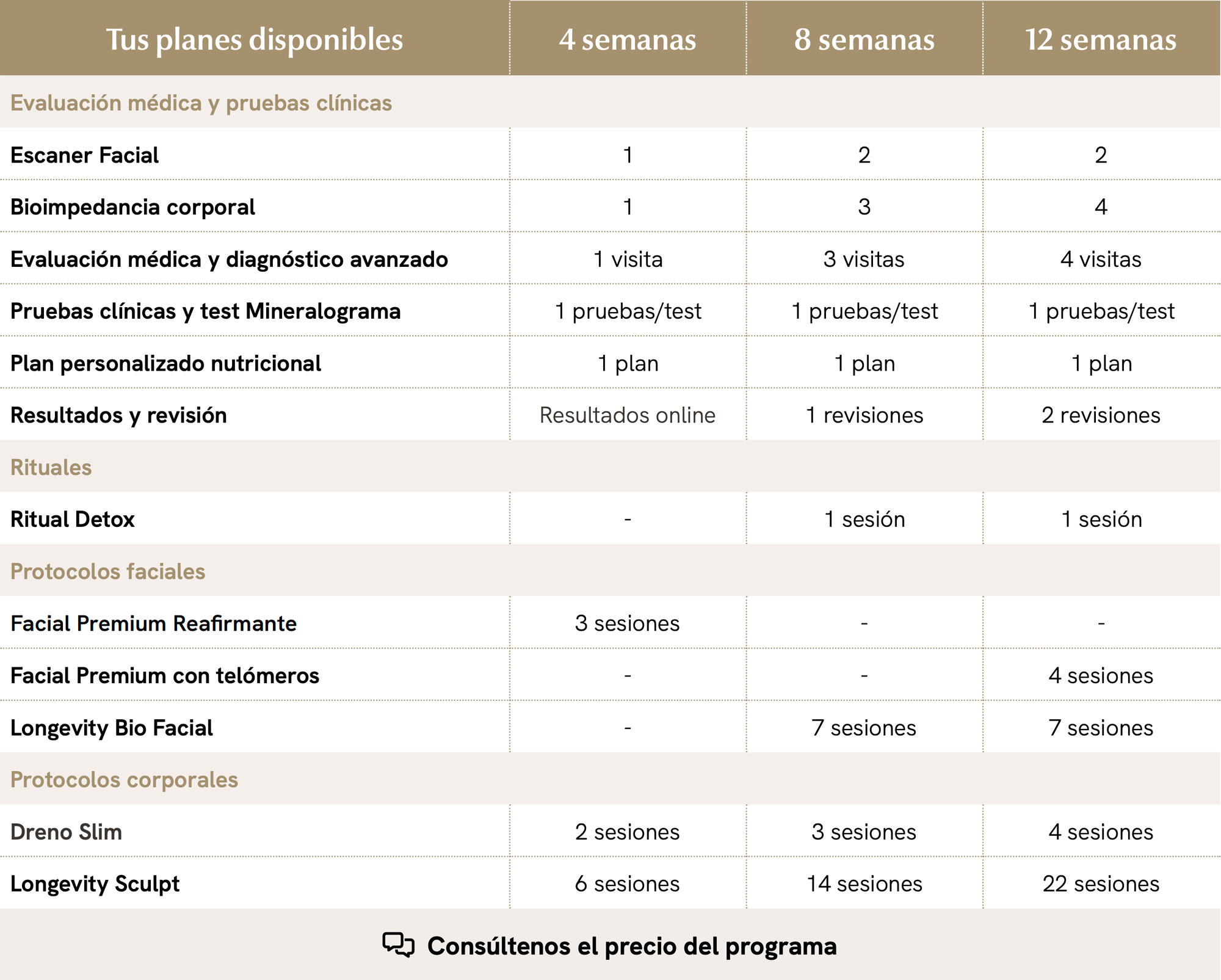 Nuestro programa Metabolic Woman incluye una bienvenida personalizada y un obsequio Halo Longevity y acceso completo al club deportivo, con piscina, sauna y clases dirigidas incluidas y/o entrenamientos personales, creando el entorno ideal para cuidar cuerpo y mente desde el primer momento.