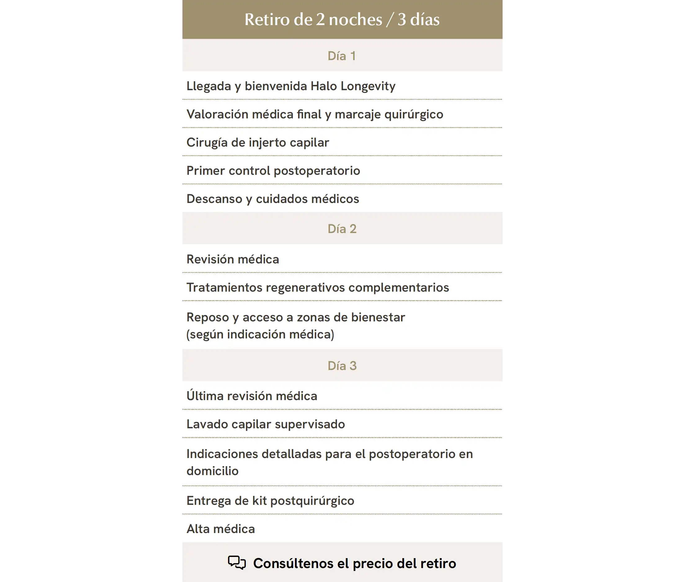 Antes de iniciar el Programa de Injerto Capilar Quirúrgico, es imprescindible realizar una valoración médica previa por parte del equipo de Halo Longevity para confirmar la indicación quirúrgica y definir un plan totalmente personalizado.